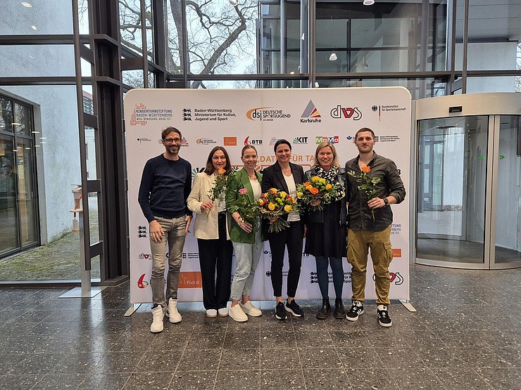 Involviert waren aus dem Institut für Bewegungserziehung und Sport (von links nach rechts): Dr. Rainer Neumann (Diskutant, FoSS Schwimm-Fix), Frau Prof. Dr. Elke Opper (AG Stressbewältigung, AG Motorik), Frau Dr. Sarah Heinisch (Leitung der Feldarbeit der MoMo 2.0-Studie), Prof. Dr. Annette Worth und V.-Prof. Dr. Anke Hanssen-Doose (Projektleiterinnen MoMo an der PHKA), Herr Thorsten Klein (AG Motorik und Leitung der Feldarbeit der COMO-Studie)